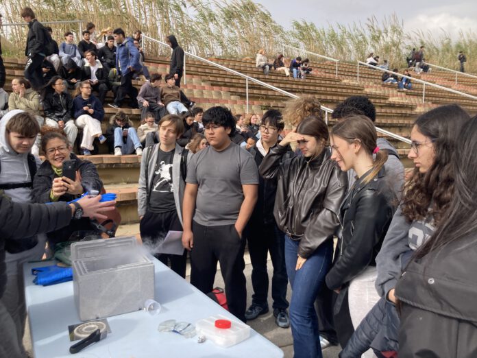 L’alumnat de l’optativa de Física i Química de 4t ESO ha participat a l’activitat STEAM-FORUM organitzada per l’UPC. Allà ha pogut fer algunes experiències relacionades amb la matèria, com ara reaccions àcid-base, refracció de la llum i Principi de Pascal. També ha pogut observar com actuaven els superconductors en el fenòmen de la levitació magnètica. Tot un matí ple de ciència!