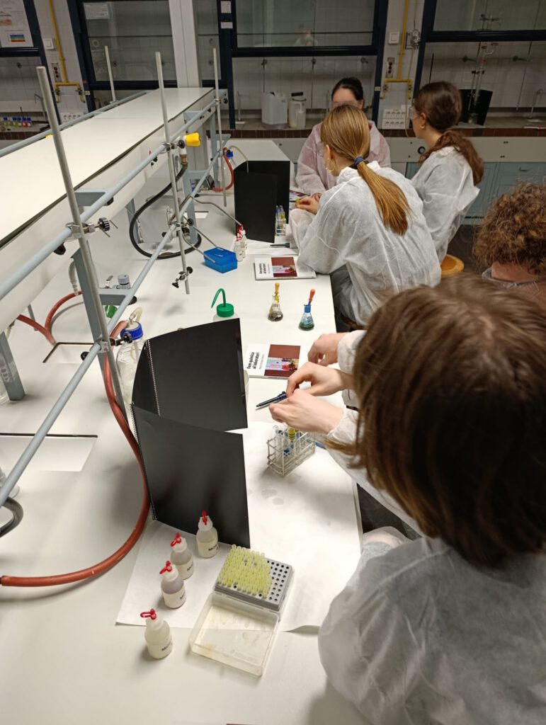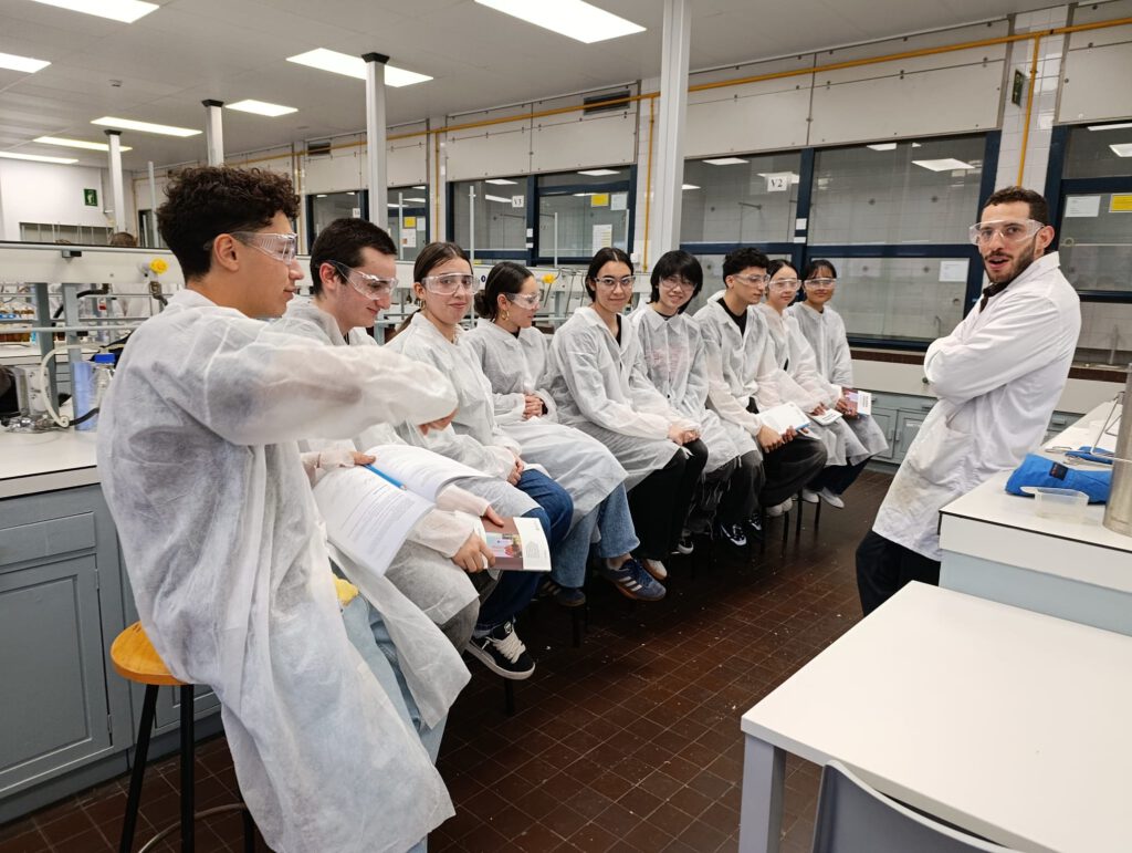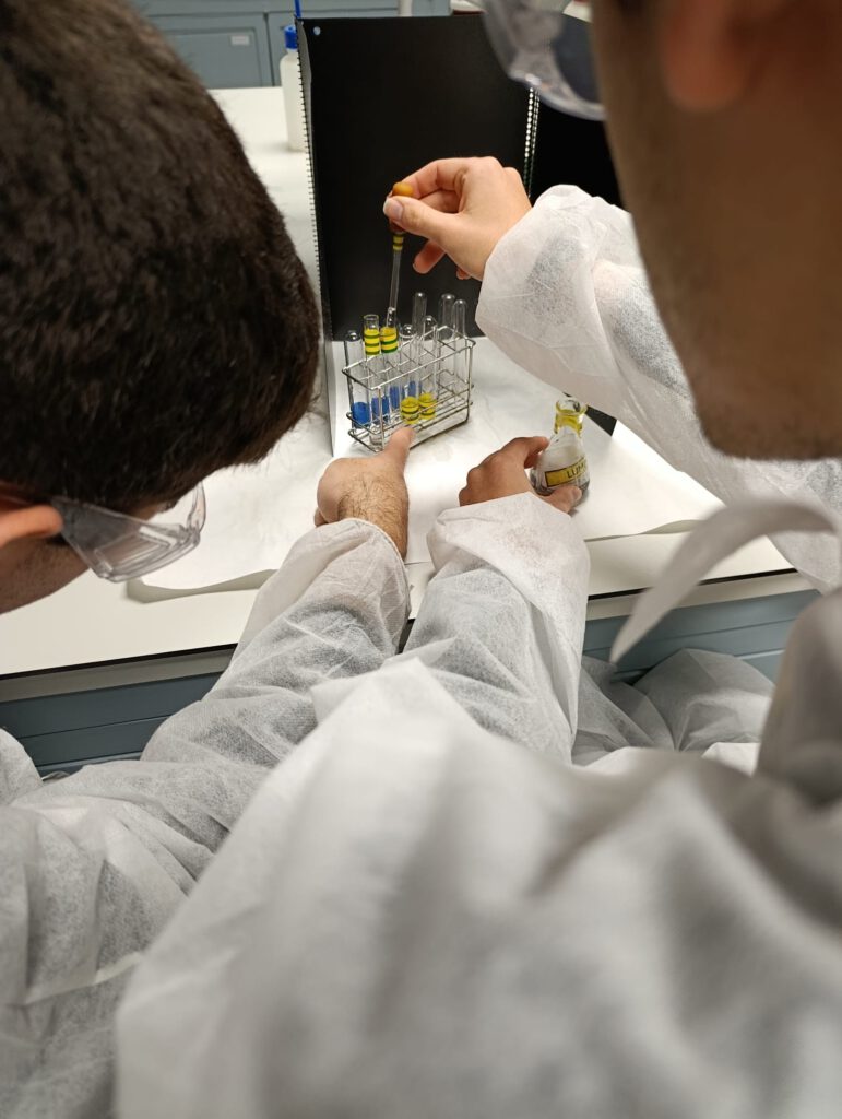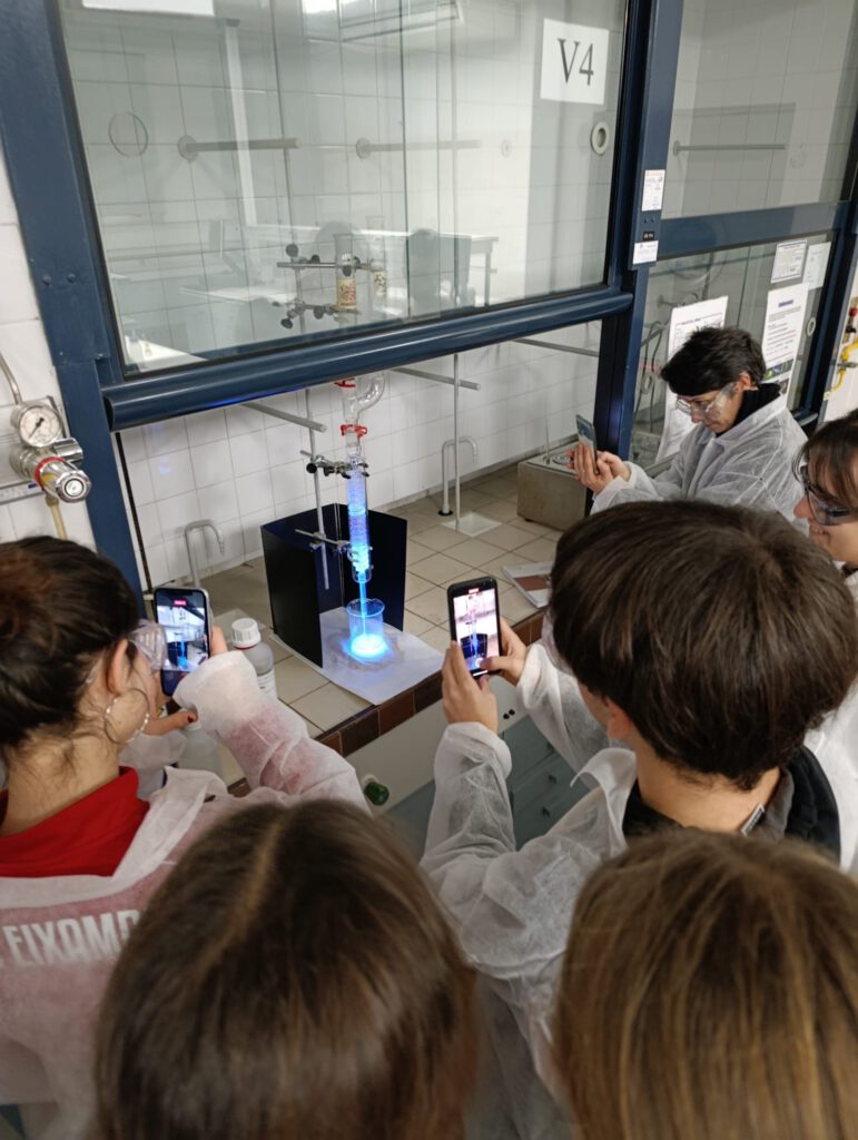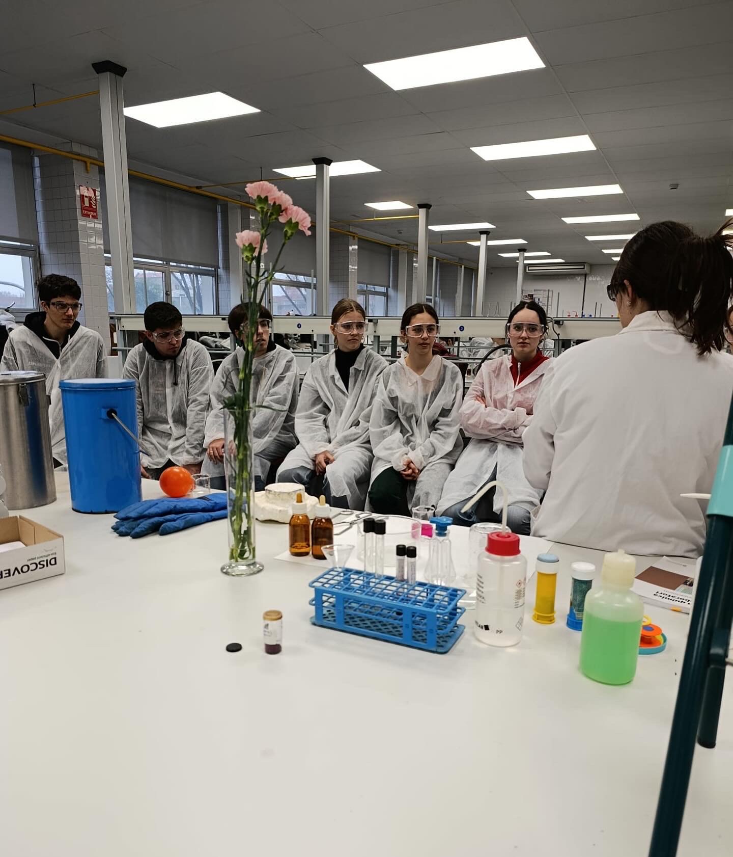 El dilluns 2 de febrer els alumnes de Química de 1r IB van anar a la Facultat de Química de la UB per gaudir de l’activitat «Fem Química al laboratori».Van realitzar quatre pràctiques “El racó del fred”, “Identifiquem analgèsics”, “Il·lumina l’escena del crim” i “Reaccions a petita escala” . Van aplicar tècniques de separació com la cromatografia, així com treballar els tipus de reaccions (redox, precipitació, àcid-base…). Els alumnes van poder jugar («Racó del fred») i aprendre Química alhora.